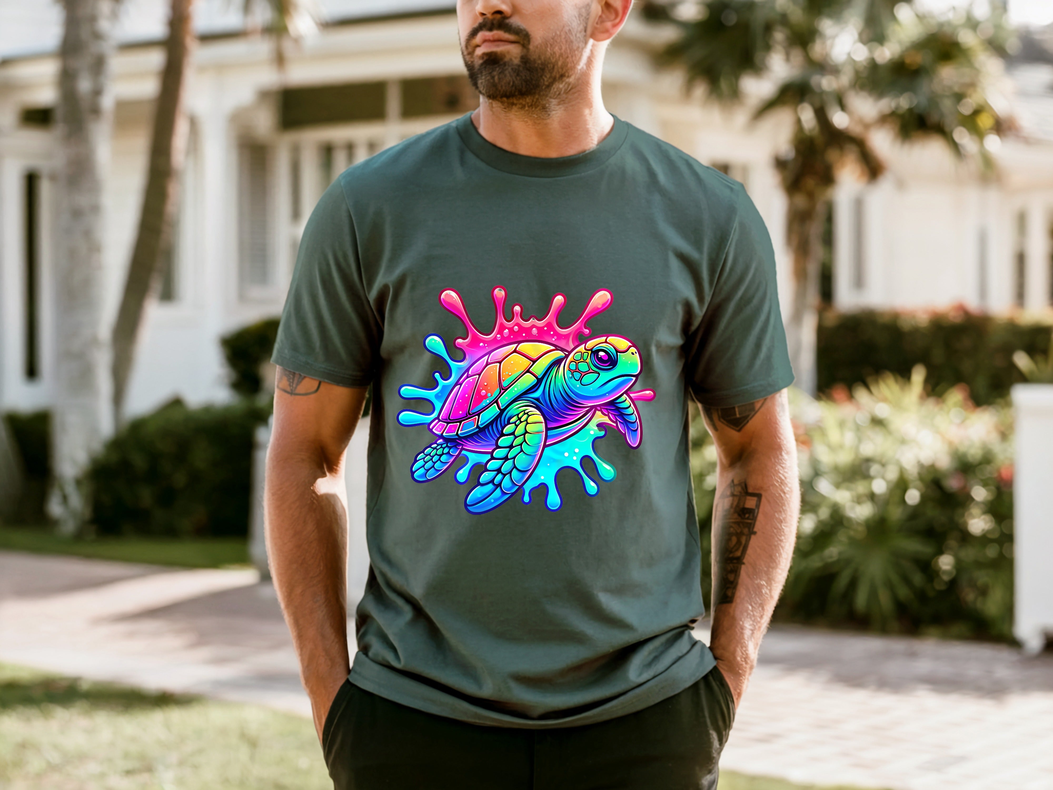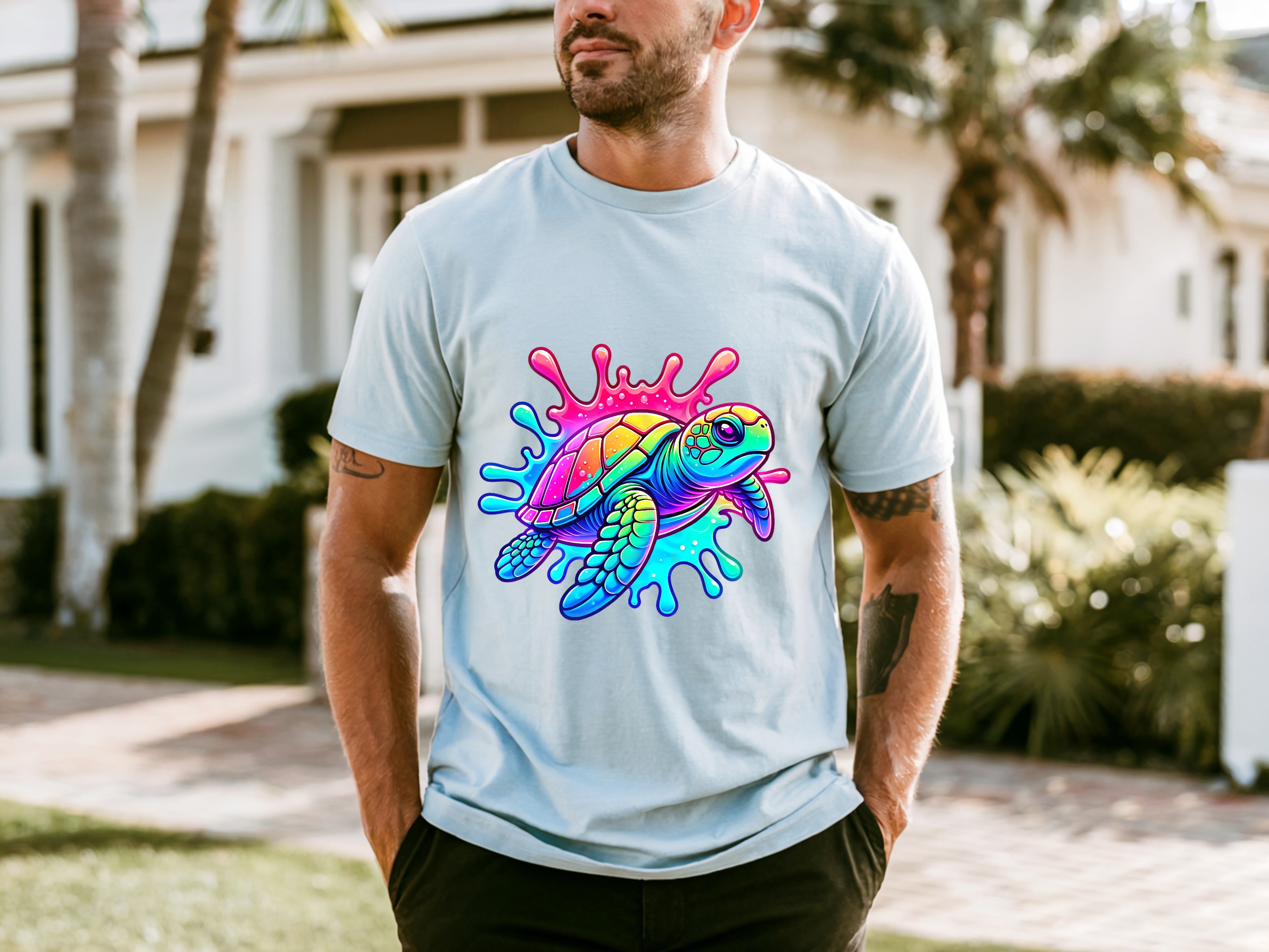 Wash item inside out in cold water, do not bleach, do not dry clean, do not iron directly on the design. Tumble dry low.
